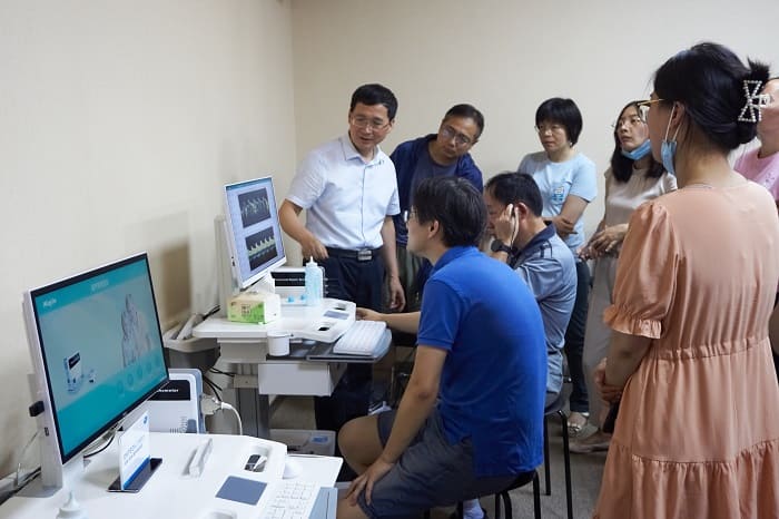公司領(lǐng)導(dǎo)對(duì)專家們蒞臨指導(dǎo)表示熱烈歡迎,研發(fā)工程師為專家們介紹了南京科進(jìn)的TCD儀及產(chǎn)品的臨床應(yīng)用,并作了現(xiàn)場(chǎng)操作演示,對(duì)有關(guān)技術(shù)問(wèn)題進(jìn)行了深入探討。