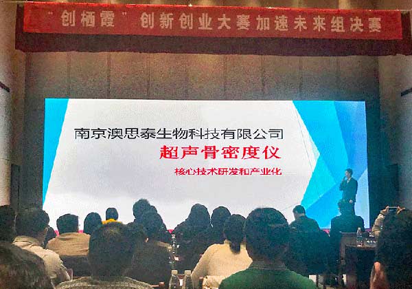 2019年4月15日,首屆“創(chuàng)棲霞”創(chuàng)新創(chuàng)業(yè)大賽頒獎典禮在南京紫東生態(tài)會議中心隆重舉行,澳思泰公司參賽項目“超聲骨密度儀核心技術研發(fā)”榮獲“加速未來組”三等獎。