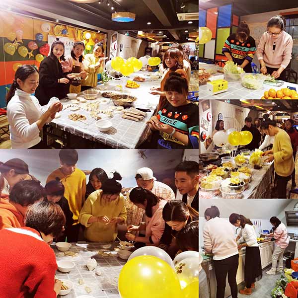 今天,小伙伴們一起做好吃的,有餃子,有火鍋,還有硬菜……這個過程中,涌現(xiàn)出了好多能手,黃海鳳的紅燒雞塊…王丹丹的酸菜魚…王玲和任艷柳包餃子,又快又好看……還有我們其他小伙伴,洗菜、切菜、擺盤…動作麻利,相互配合著,真是準備得又快又好。